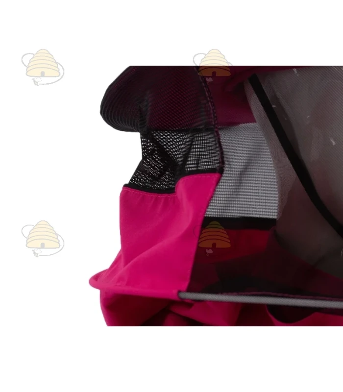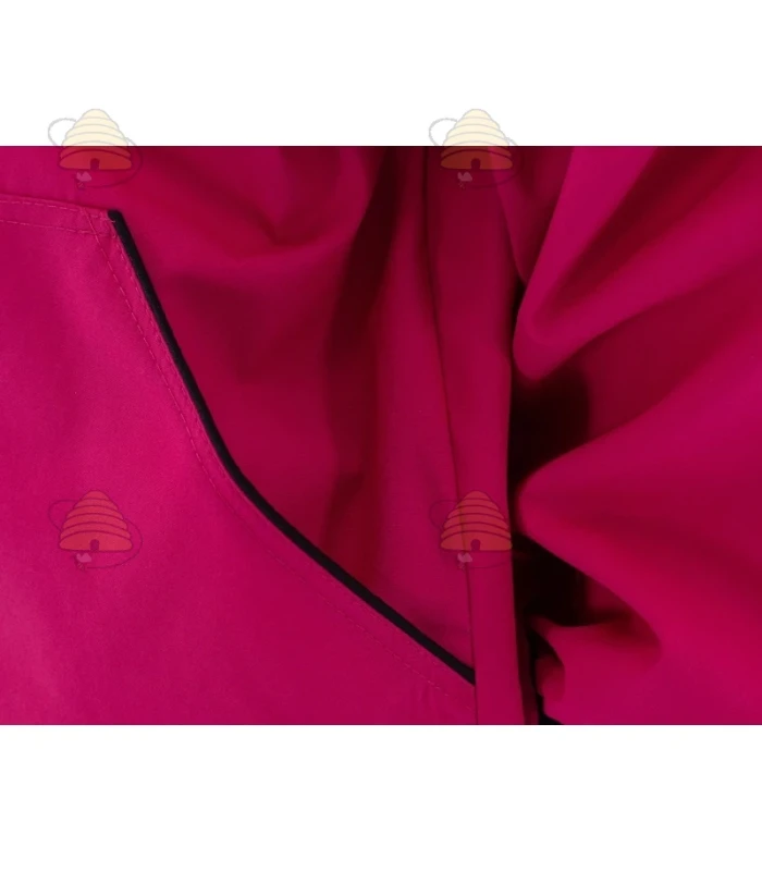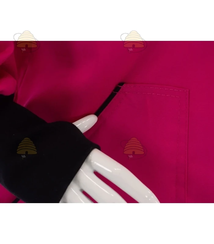 La veste est fuchsia et dispose d'un voile rond et de poignets élastiqués. Une veste apicole durable, confectionnée dans un tissu respirant.