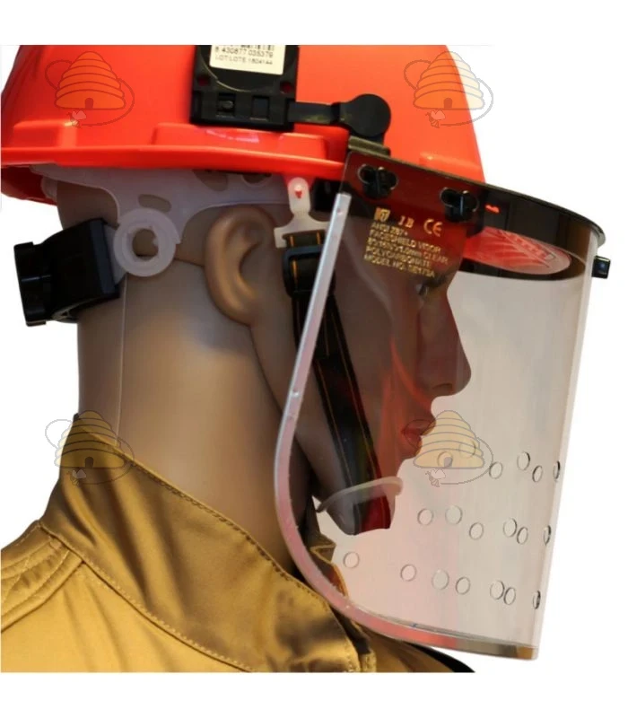 - Casque ajustable en plastique avec visière rigide en maille métallique : maintient une distance sécurisée entre le visage et le filet. Il évite tout risque de piqûre au travers du voile et offre un champ de vision panoramique de 180°