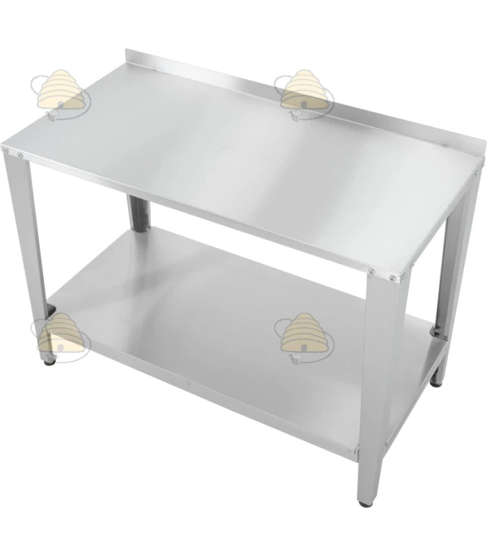 Table de travail de 200 cm de large. Meuble durable, hygiénique et résistant à la corrosion pour votre espace de production de miel. Une table de travail idéale pour la désoperculation des cadres ou la filtration de votre miel.