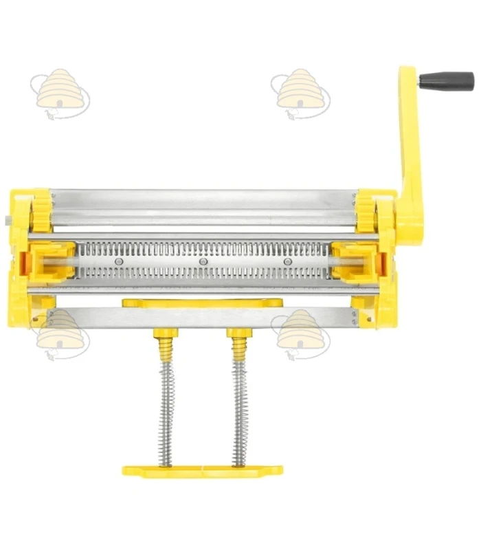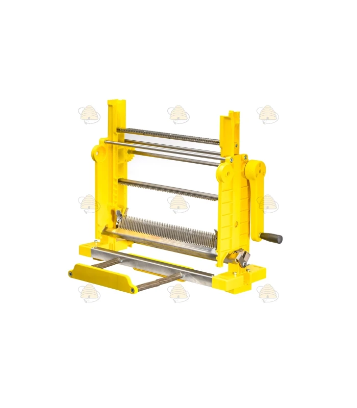 Machine à désoperculer les cadres Dadant US manuellement. Cette machine à désoperculer facilite grandement la désoperculation. Ce désoperculateur accélère considérablement le processus de désoperculation. La machine fonctionne selon le principe d’une fourche à désoperculer et enlève environ 3 mm de la couche superficielle sur les deux faces du cadre.