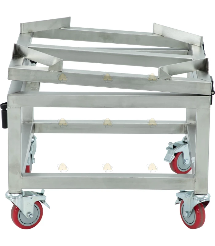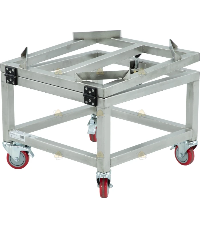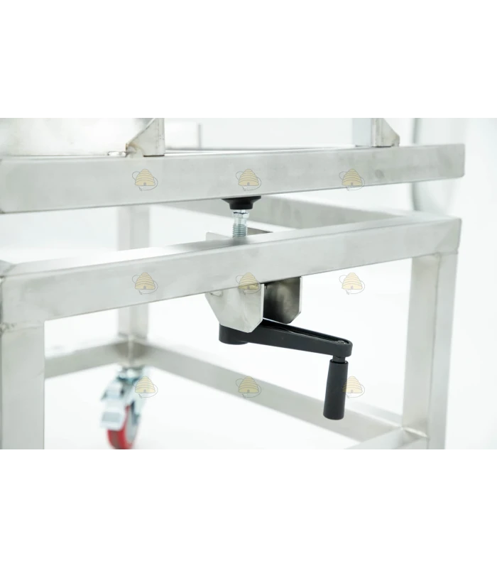 Chariot conçu pour le déplacement confortable et sécurisé des maturateurs et des mélangeur à miel. Le chariot est en acier inoxydable, résistant à la corrosion et à un usage intensif. Les roues pivotent dans toutes les directions et sont équipées d’un frein. La plateforme sur laquelle est placée la cuve est munie d’un levier permettant de régler l’angle d’inclinaison de la plateforme jusqu’à 3 %. Cette fonction permet de vider la cuve sans effort, en toute sécurité et de manière contrôlée.