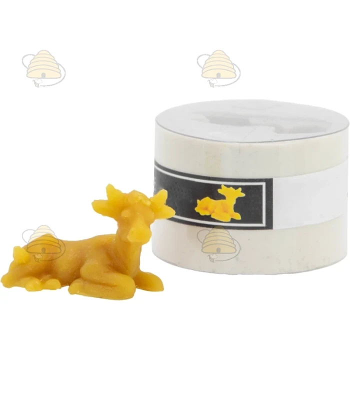 Moule en silicone pour réaliser une figurine représentant un bœuf couché. Ce moule mesure 4,5 cm de large et 3 cm de haut. Pour réaliser un bœuf, comptez environ 6 g de cire d’abeille. Tous les moules sont fabriqués en silicone de haute qualité et sont donc réutilisables au minimum 1000x.