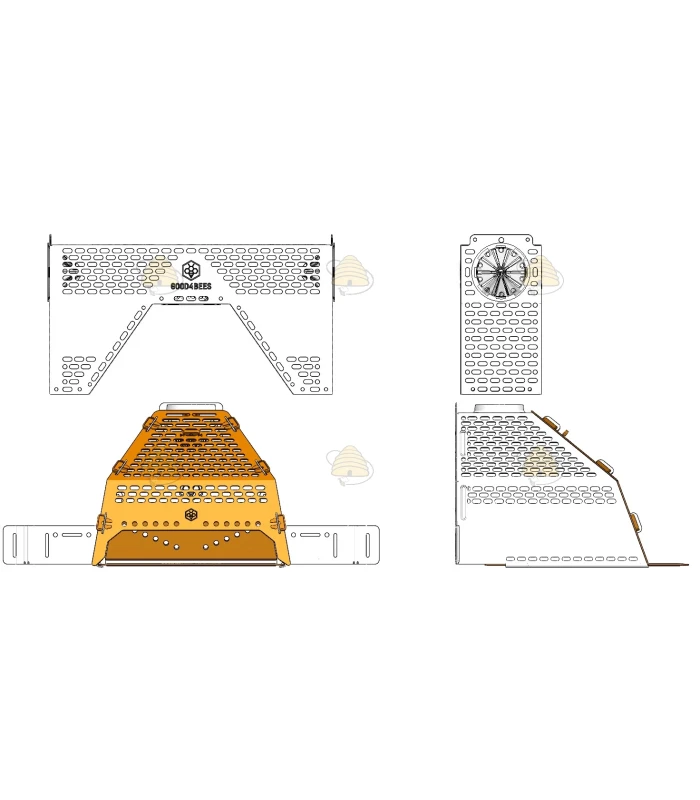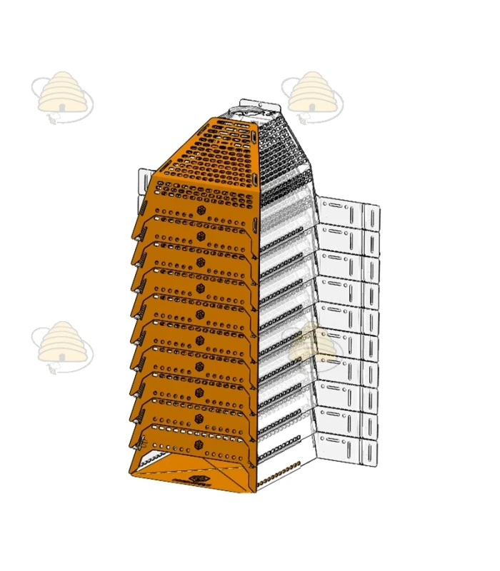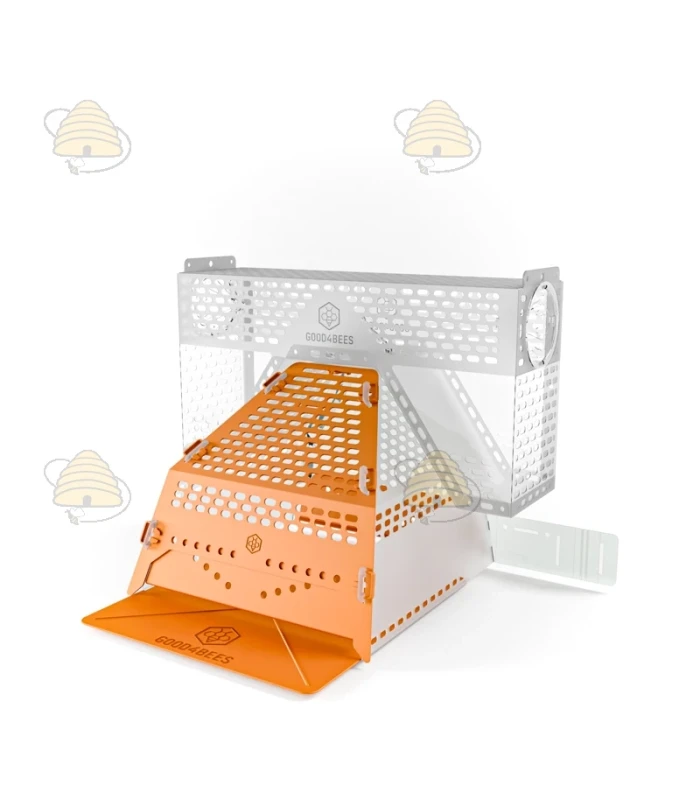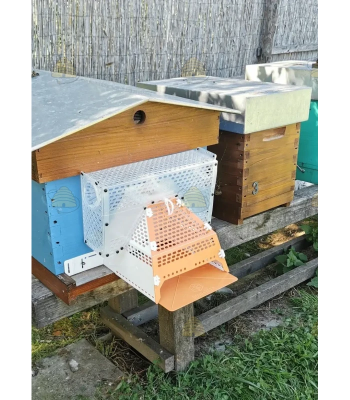 Les parois sont rendues opaques pour réduire le stress des abeilles, le piège est sélectif, la cage offre un débit d’entrée et de sortie très élevé pour votre colonie.