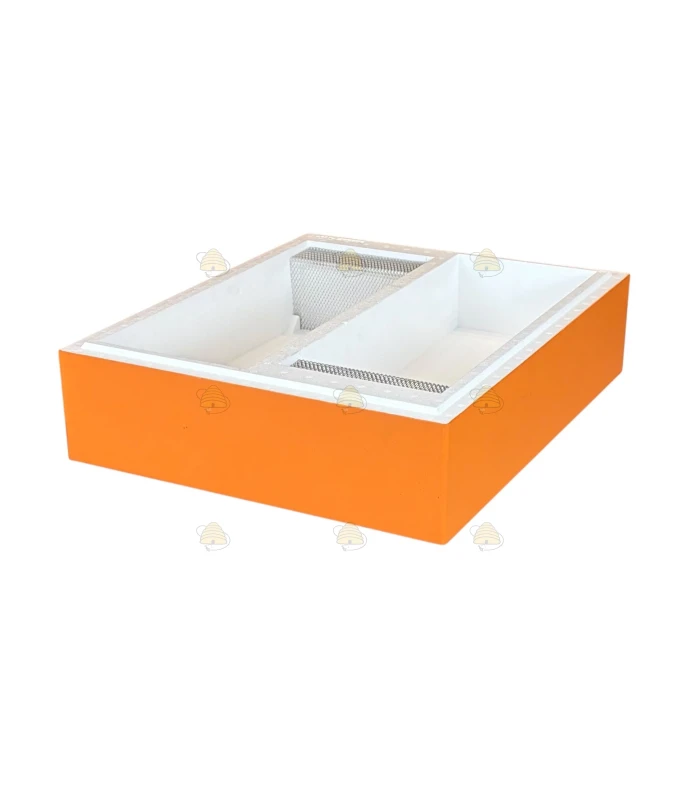 Nourrisseur pour ruches 10 cadres de la gamme Multi-Frame. Ce nourrisseur est fabriqué en EPS/polystyrène haute densité peint en orange et se compose de 2 compartiments d’une capacité de 4,5 L chacun. Le nourrisseur est compatible avec tout type de ruche de la collection Multi-Frame à toit bas.