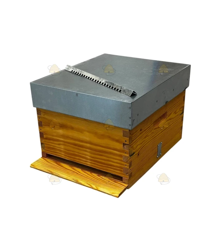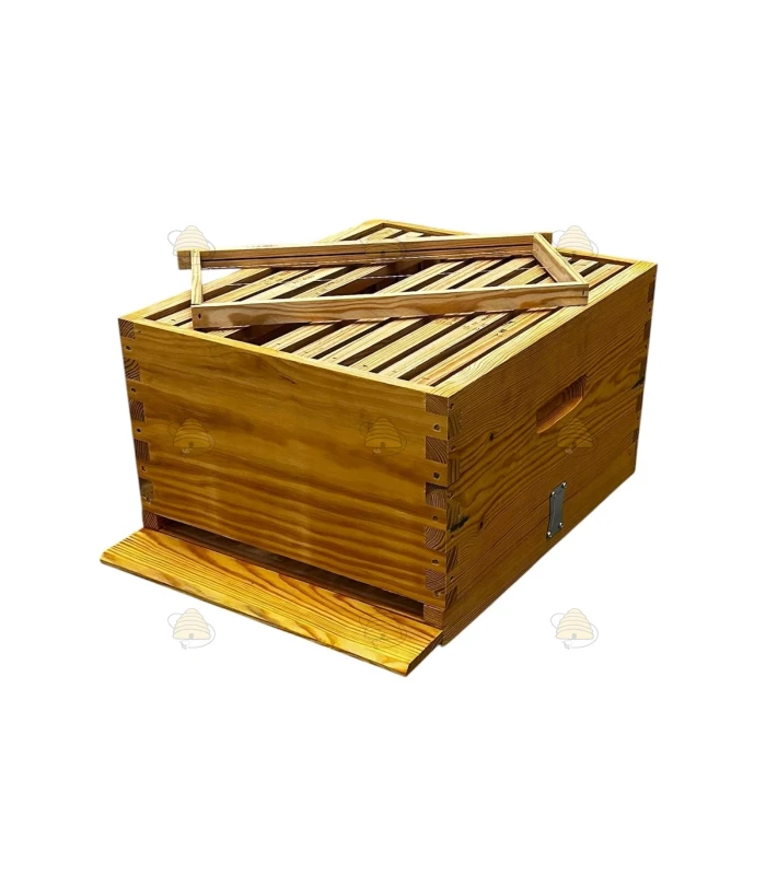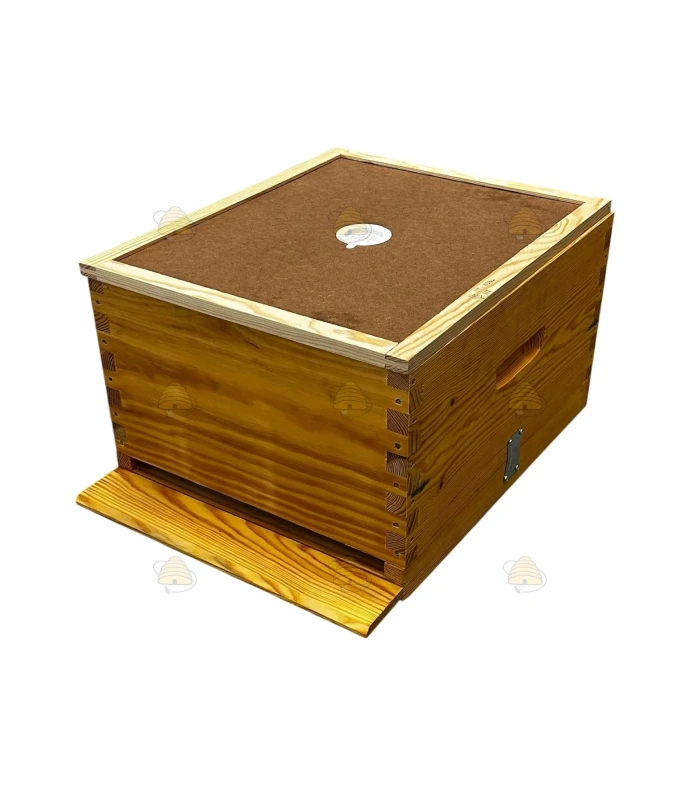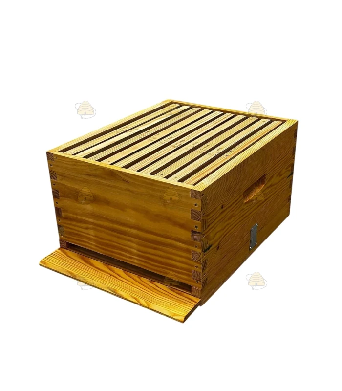 Ruche Langstroth US en pin simple paroi, livrée complète et déjà imprégnée d'huile de lin.