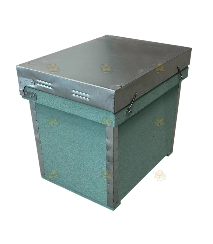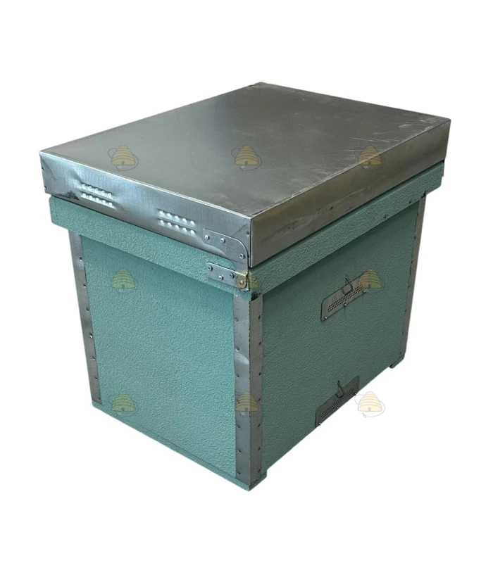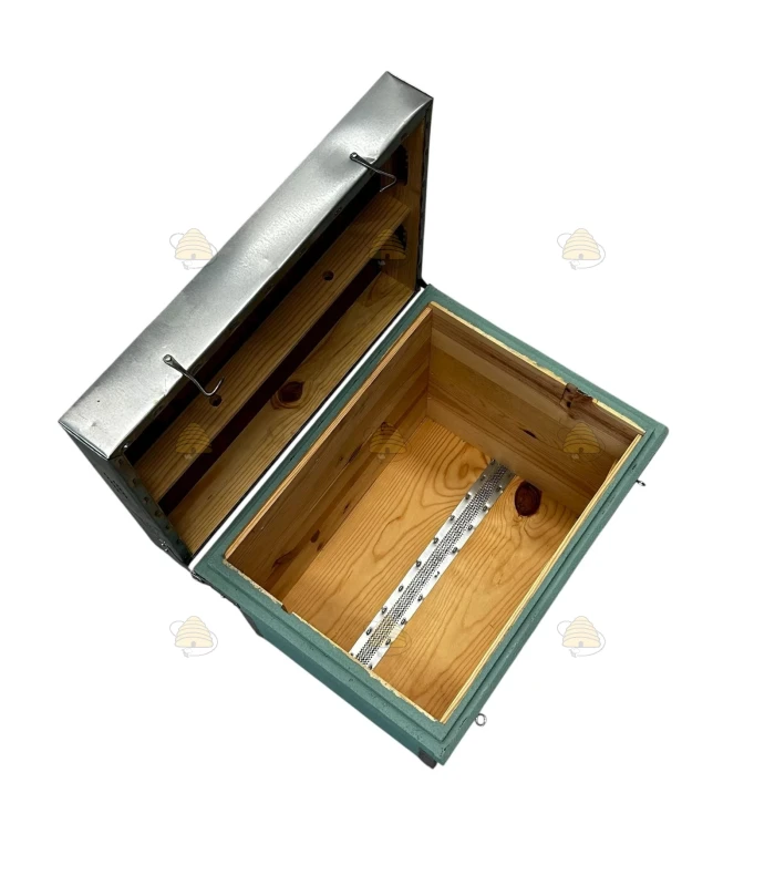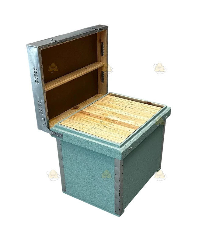 Cette ruche se compose d’un plancher, d’un corps couvain/miel et d’un toit.