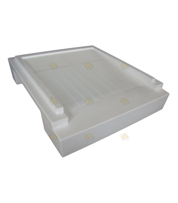Plancher anti-varroa bas (avec grille de fond) pour ruche Segeberger (hors tiroir de comptage Varroa). Avec le tiroir de comptage Varroa, il est possible de surveiller le varroa dans la ruche Segeberger. L’avantage d’une ruche en styropor est son poids et son isolation. Cela facilite l’apiculture lorsque le poids compte. Les ruches sont fabriquées en Allemagne.